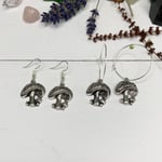Hand pieced mushroom earrings on silver plated ear hooks. If you want hoops, please just request this in your order comments at check out.